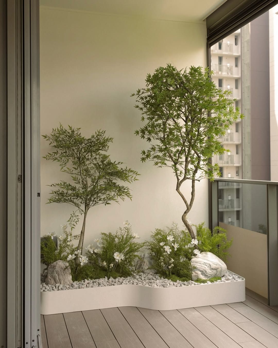 Một tiểu cảnh ban công không chỉ mang đến điểm nhấn sinh động và đầy sức sống cho không gian sống, mà còn giúp bạn tự do kết hợp cây xanh, đá, nước, chậu hoa và đèn trang trí theo phong cách riêng. Nhờ vậy, căn hộ trở nên sang trọng, thu hút và tăng giá trị thực tế, khiến bất kỳ ai cũng phải trầm trồ khi bước vào